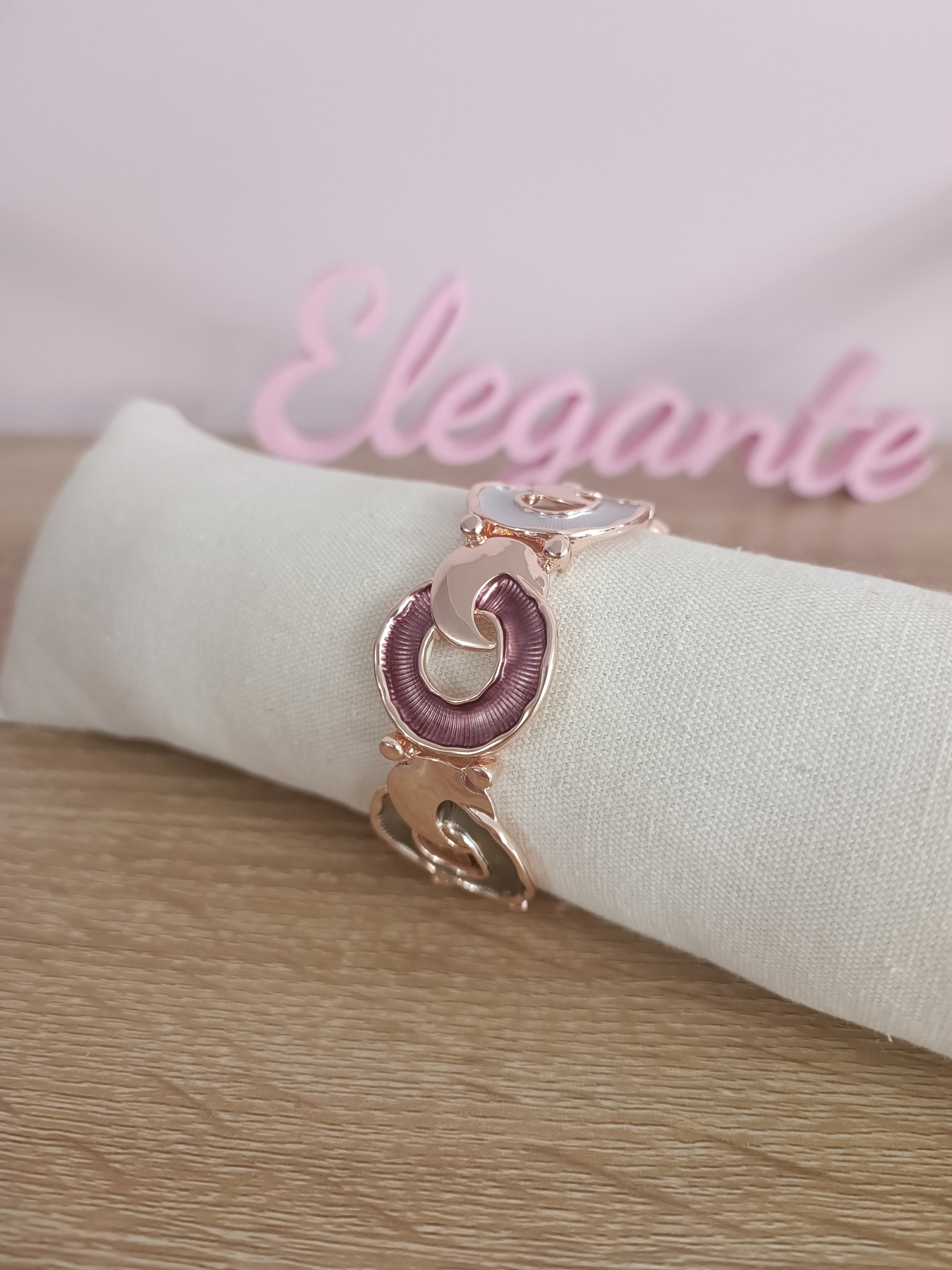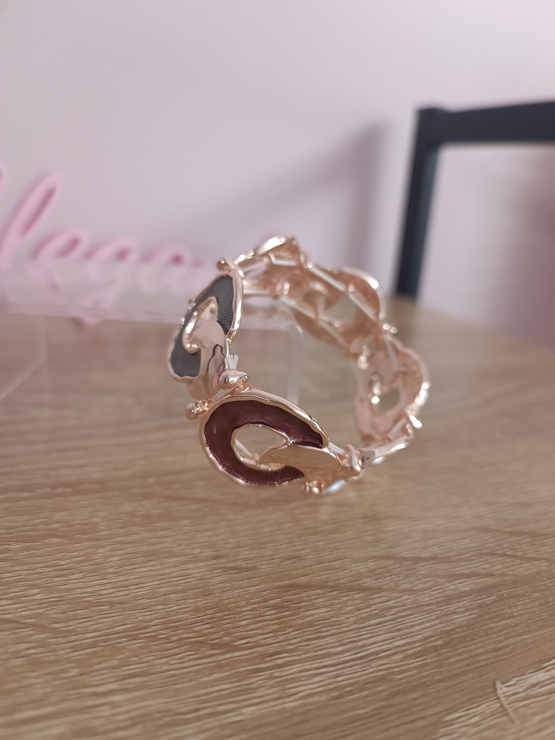 Bracelet métallique rose-gold, modèle "maillons entrelacés".