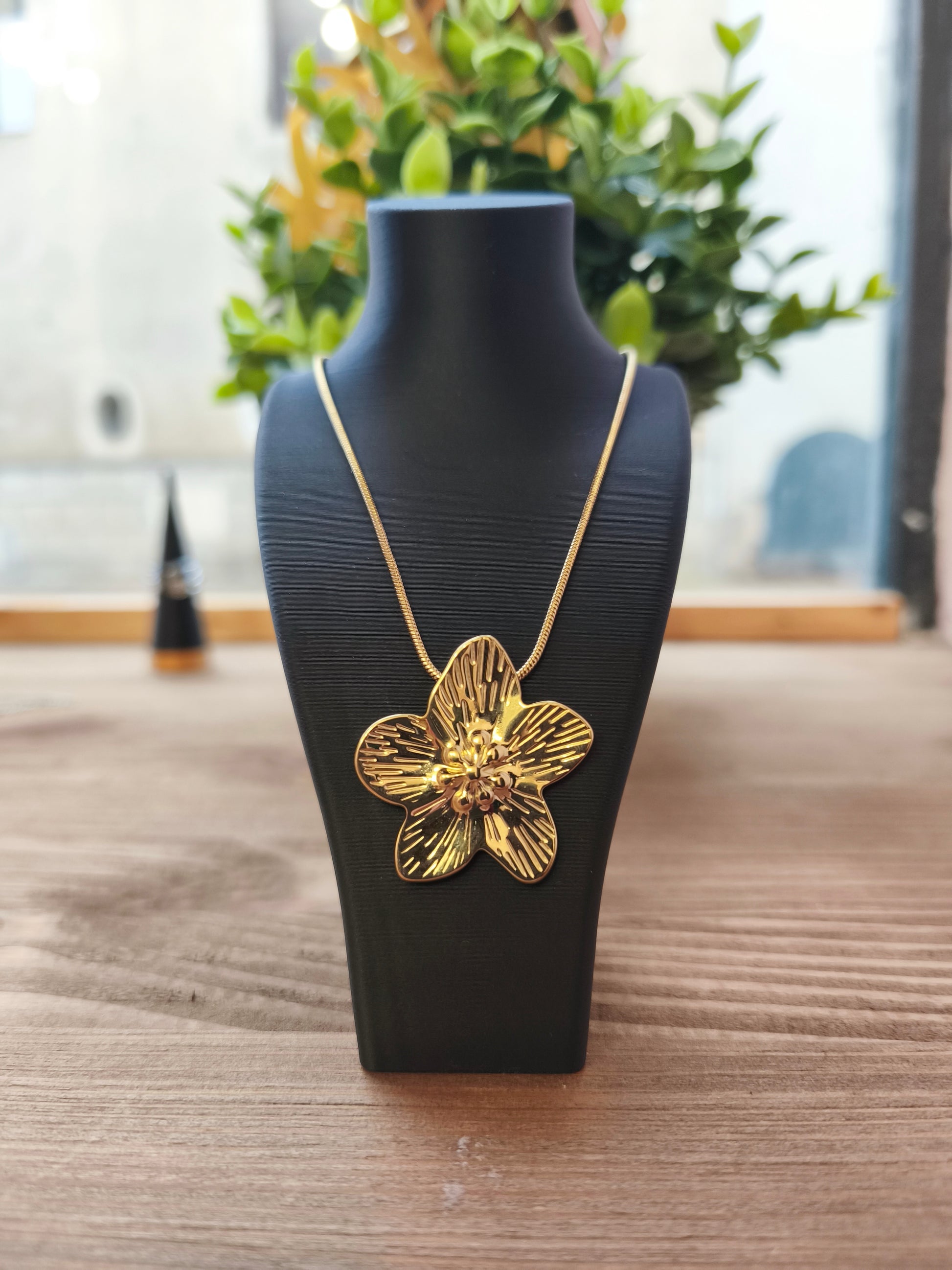 Collier dorée muni d'un beau pendentif en forme de fleur de pommier. En acier inoxydable.