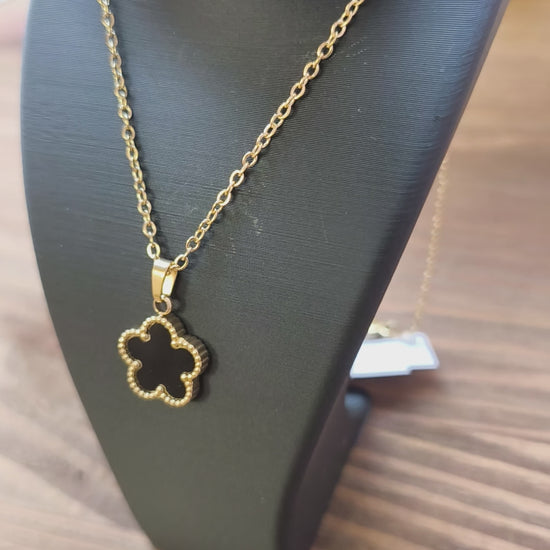 Collier fin doré avec pendentif fleur noire. En acier inoxydable.